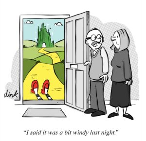 Chris Williams or ‘Dink’, is an award winning (No honest!) freelance cartoonist. Available for commission on business and personal projects and has been published in magazines, books and newspapers such as Private Eye, Big Issue, The Critic etc. Chris is also a member of the Professional Cartoonists’ Organisation and The Cartoonists’ Club of Great Britain. Chris likes nights out, a good sense of humour, has all his own teeth and is looking for a … oh… no… ‘ang on…wait… that’s for a different website.