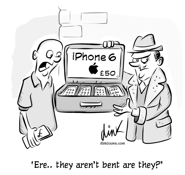 *psssssst* Can I interest you in an iPhone 6 cartoon guv? Oh dear, seems the latest iPhone release has received some complaints as users found them bending in their pockets.